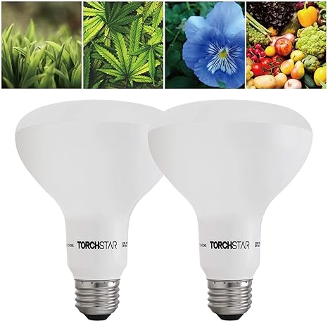 Torchstar Grow Light Bulb 10w Br30 Dimmable Led Plant Light Ul Listed For Indoor Planting Gardening Green House 120 Flood Light 2 Pack